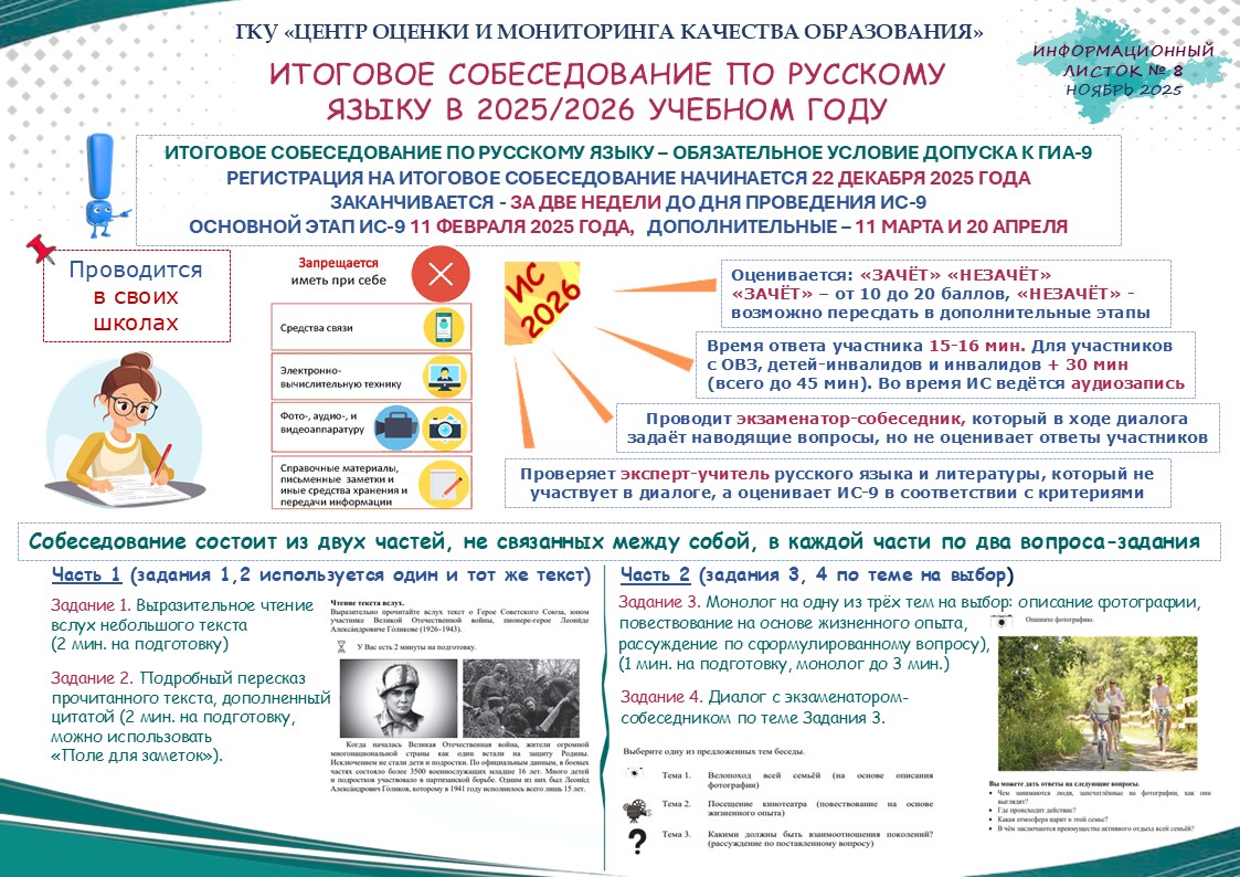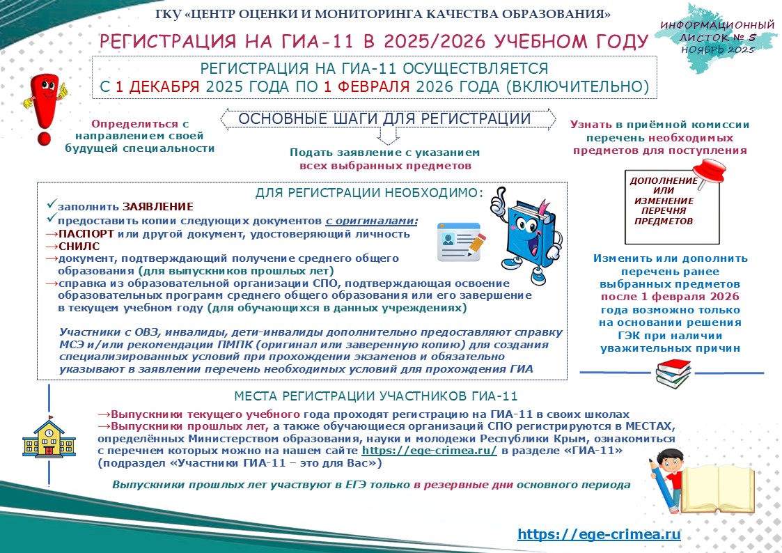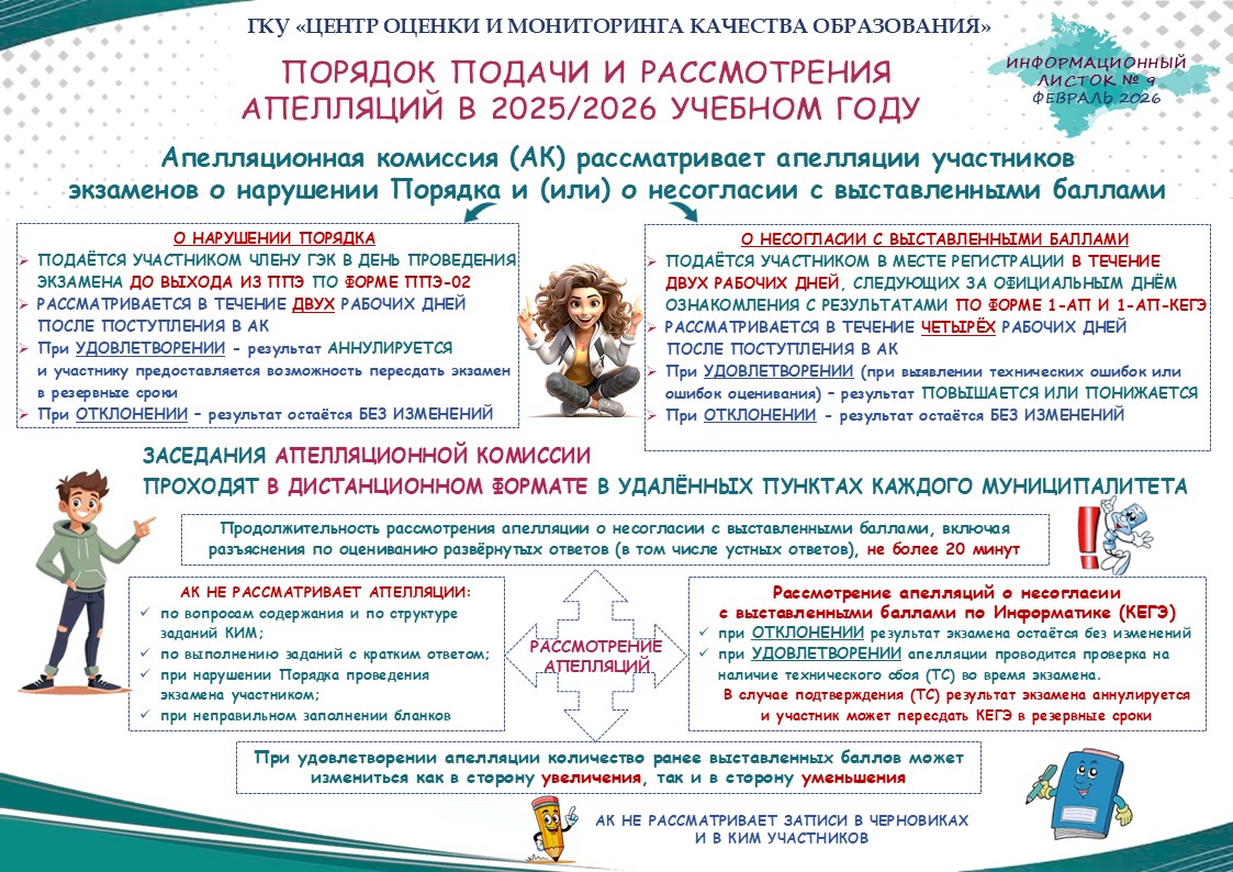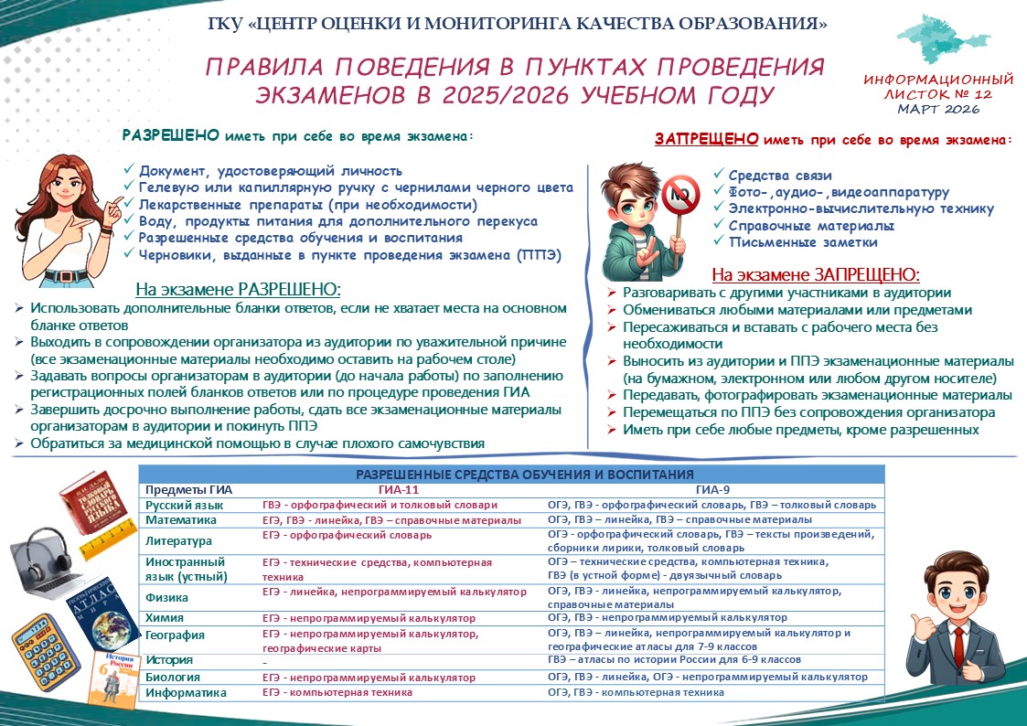 Администрация школы информирует, что приём заявлений выпускников 9 классов МБОУ г. Керчи РК «Школа № 13» на ГИА-9 в 2026 году осуществляется с 22.12.2025 г. по 01.03.2026 г. включительно на базе учреждения, в котором выпускник обучается.
