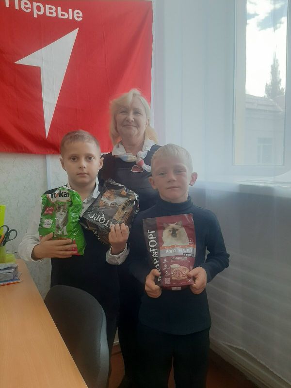 Команда школьных активистов «Движения первых», родители и педагоги, не равнодушные к судьбе четвероногих друзей, совместно с советником директора по воспитанию собрали лакомства для собак и кошек.